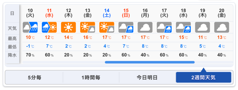 明日以降は、だんだんと気温が上がってきますが、天気はあまり良くない模様です。