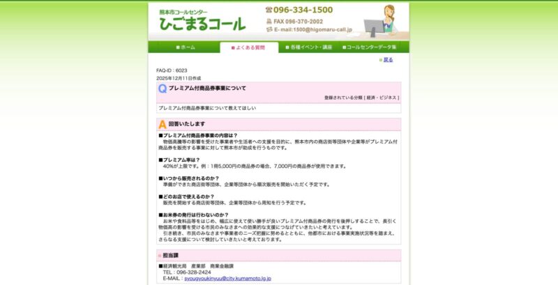 出典:「Q.プレミアム付商品券事業について」熊本市コールセンター ひごまるコール